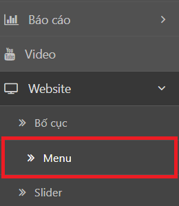 Bước 1: Trong trang quản trị website, bạn chọn Website -> Menu